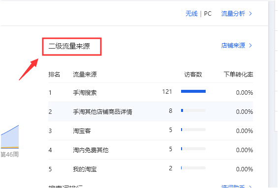 ①从千牛后台进入生意参谋,从流量的来源渠道我们可以看到店铺的流量构成,随着无线端的普及,现在网购客户群体百分之九十都是手机端用户,所以我们的关注点也是在无线端的流量获取上面,不付费的流量依然是我们热衷并追逐的流量端口,其中的手淘搜索,手淘前端等不付费流量又是我们的着重关注对象。